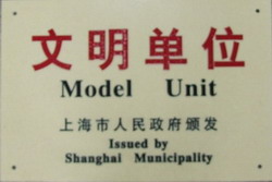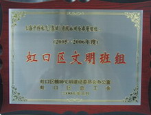 2007年6月11日,上海市虹口区科委举行虹口区科技系统荣获上海市劳动模范、市十三届文明单位、区文明单位、先进集体、文明班组、红旗文明岗表彰大会。我集团荣获四项殊荣――集团被上海市人民政府授予上海市文明单位称号、电气自动化研究所张丽晨同志被授予虹口区先进个人称号、集团工业园仓库管理班组被授予虹口区文明班组称号、GE项目事业部被授予区科技系统先进班组称号。