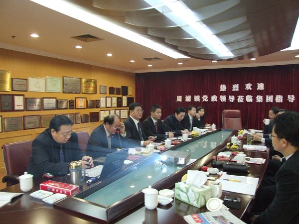 在集团总部会议室,总裁特别助理、国际贸易管理处总经理史锡正首先从“前进中的中科集团”、“新发展、新机遇、新挑战”、“战略转移和布局调整”、“感谢支持,再创佳绩”四个方面进行了全面的汇报,并着重就正在新建中的高科技园区作了较为详实的介绍。董事长助理、党支部书记李修明重点就公司科技创新的情况,即企业建立和实施科技创新的长效机制、产业发展的开发项目和成果、创新能力建设项目等方面进行了介绍。陈董事长在讲话中对南汇区政府和周浦镇政府多年来关心、帮助和支持中科集团发展表示由衷地感谢,并对目前高科技园区建设中出现的问题,迫切请求上级领导给予协调和解决,以更好地助推企业发展。周浦镇党委书记谢根明、周浦镇镇长董建敏、原南汇财政局局长储野元等领导在认真听取了公司领导的汇报和介绍后,周浦镇党委书记谢根明发表了热情洋溢的讲话。他对公司以创业的精神,高起点,高目标,高要求的科技创新的发展思路,推动企业持续、健康和快速发展以及近年来所取得的成绩给予了充分的肯定和高度的评价,并殷切希望中科集团要抓住机遇,攻艰克难,扎扎实实按照企业所制定的战略规划和目标一步一个脚印向前发展。同时表示,政府部门一定会竭尽全力,为企业服务好。对企业提出的供电、供水等方面的基础建设的要求,将尽快协调解决,尽快帮助企业完成建设,尽快投产,同时将向南汇区政府各职能部门推荐介绍上海人民电力设备股份有限公司的情况,争取在政治待遇上给予支持。