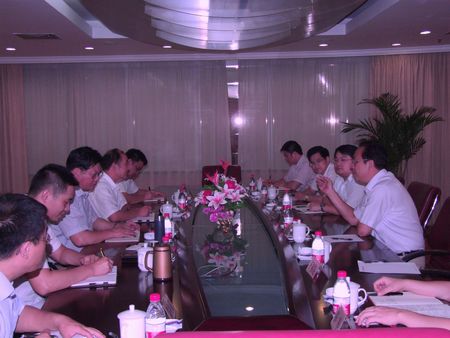 在公司会议室,陈董事长首先介绍和汇报了公司近年来的生产经营、科技创新等方面的情况,重点介绍了公司新建投产的高科技工业园建设情况。在听取了陈董事长的介绍和汇报后,胡雅龙会长发表了热情洋溢的讲话。首先,对公司又好又快的发展给予了充分的肯定和赞赏,对公司在生产经营和高科技工业园建设中面临的一些难重点问题将予以积极的帮助解决,为公司进一步大发展助一臂之力,并寄语公司再接再厉,更上一层楼,进一步做大做强做优,为上海经济建设作出新的更大贡献。
