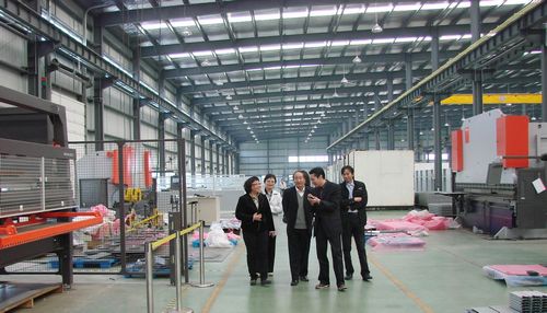 在集团会议室,陈董事长与廖副书记等领导进行了亲切地会谈,李书记汇报和介绍了公司党建工作和组织发展工作。在李书记的陪同下,廖副书记一行又驱车前往位于浦东周浦的集团高科技工业园,深入车间、班组进行实地考察。在工业园,集团常务副总裁、工业园总经理李冲向廖副书记一行介绍了工业园生产情况以及班组员工学习、生活概况。李修明书记还着重介绍了工业园区党员精神风貌。