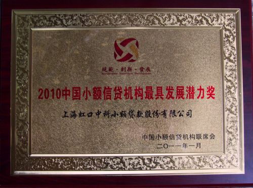 为了表彰在小贷领域的优秀企业,中国小额信贷机构联席会广邀业界专家,对中国2348家小额信贷公司进行筛选,参照规模、效率、风险、回报率、涉农贷款比例等各项指标,进行了研究测算和严谨评选;对小额信贷行业有突出贡献,具备良好发展潜力、贷款额达到相当规模、利润持续较高增长、在推动小额信贷行业规范、持续发展上成绩显著的小贷公司,评选出了“2010中国小额信贷机构竞争力100强”、“2010中国小额信贷最具发展潜力奖”、“2010中国小额信贷最佳社会责任奖”、“2010中国小额信贷最佳创新贡献奖”和“2010中国小额信贷年度人物”等奖项。上海虹口中科小额贷款有限公司从全国上千家小贷企业中脱颖而出,荣获“2010中国小额信贷最具发展潜力奖”。 |