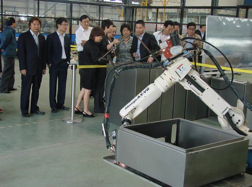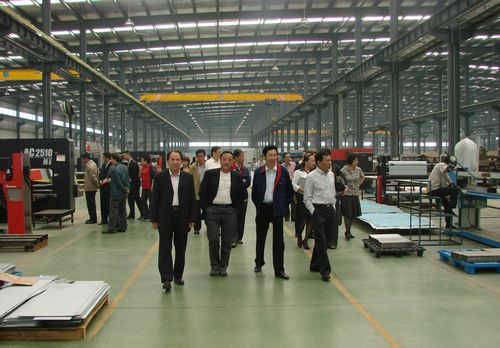 陈磊总裁向客人们介绍集团近年来依靠科技创新驱动,转型发展有关方面的情况,陪同各位企业家现场参观,大家对上海中科电气集团近几年跨越式的发展给予了高度的赞扬,在参观工业园区先进的瑞士百超激光切割设备、日本AMADA数控钣金加工生产线、美国诺信自动粉末喷涂设备、日本OTC公司焊接机器人、德国TOX钣金铆接机及立式加工中心等生产流水线后,对工业园区所拥有的先进的制造设备给予很高的评价。希望有机会建立横向纵向的合作关系,共同为振兴民族工业贡献力量!